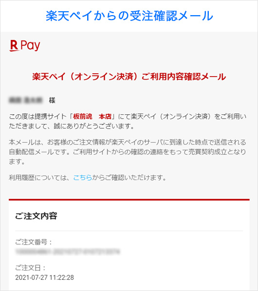 【楽天ペイからの受注確認メール】をご確認ください。